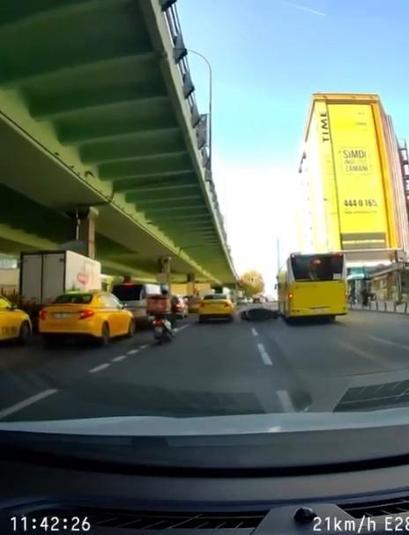 Akşam saatlerinde ara sokaktan aniden dönüş yapan başka bir taksi nedeniyle frene basmak zorunda kalan motosikletli yere düştü. Ölen ya da yaralanın olmadığı kazalar, çevredeki araçların kameraları tarafından saniye saniye kaydedildi. Görüntülerde, taksi şoförlerinin kontrolsüz şerit değiştirmeleri ve dönüş yapmaları nedeniyle motosikletlilerin yaşadığı kazalar yer alıyor.