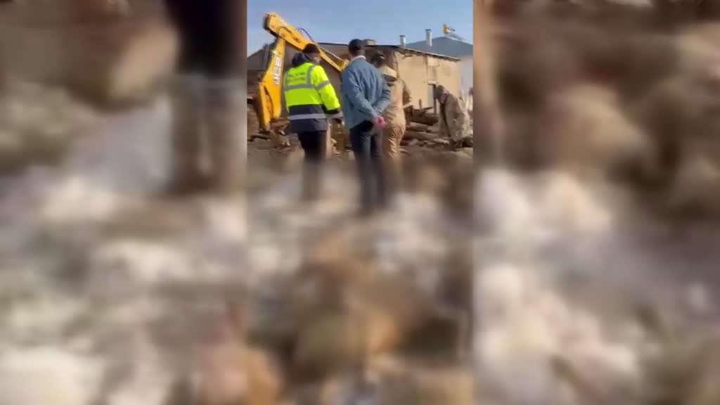 Telef olan 40 koyun, iş makineleri ve vatandaşların yardımıyla enkazdan çıkarıldı.