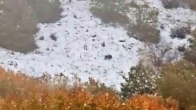 Çeltek köyünde arkadaşlarıyla gezintiye çıkan Adem İnce, yaban domuzu sürüsüyle karşılaştı. O anları cep telefonuyla kayıt altına alan şahsın sürünün arkasında kalan yavruya "Bu da sürünün arkasını topluyor" şeklinde hitabı dikkat çekti.