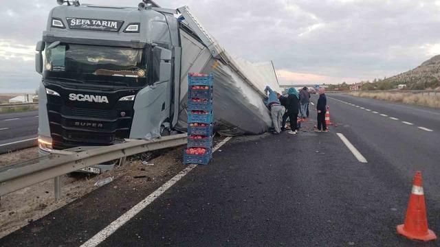 Sivrihisar’da sebze yüklü tır devrildi
