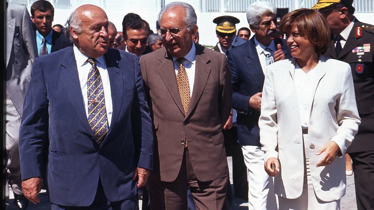 Cindoruk, Cumhurbaşkanı Süleyman Demirel ve Başbakan Tansu Çiller ile birlikte MGK tesisi içindeki heykel açılışında. (26 Temmuz 1993)