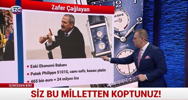 "- Zamanı ta 2014'lere saralım. Ekonomi Bakanı Zafer Çağlayan Bey. Patek Philippe 5101G, Reza Zarraf'tan aldığı söylendi. Camı safir, kasası platin. 465 Bin Euro bugünün kuru ile 24 milyon lira.