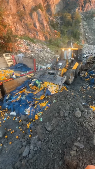 MANDALİNALARIN PLASTİKLERLE GÖMÜLMESİ TEPKİ ÇEKTİÖte yandan imha edilmek üzere bölgeye getirilen mandalinaların, kasalardan çıkarılmadan kepçe ile toprağa gömülmesi tepki topladı.
