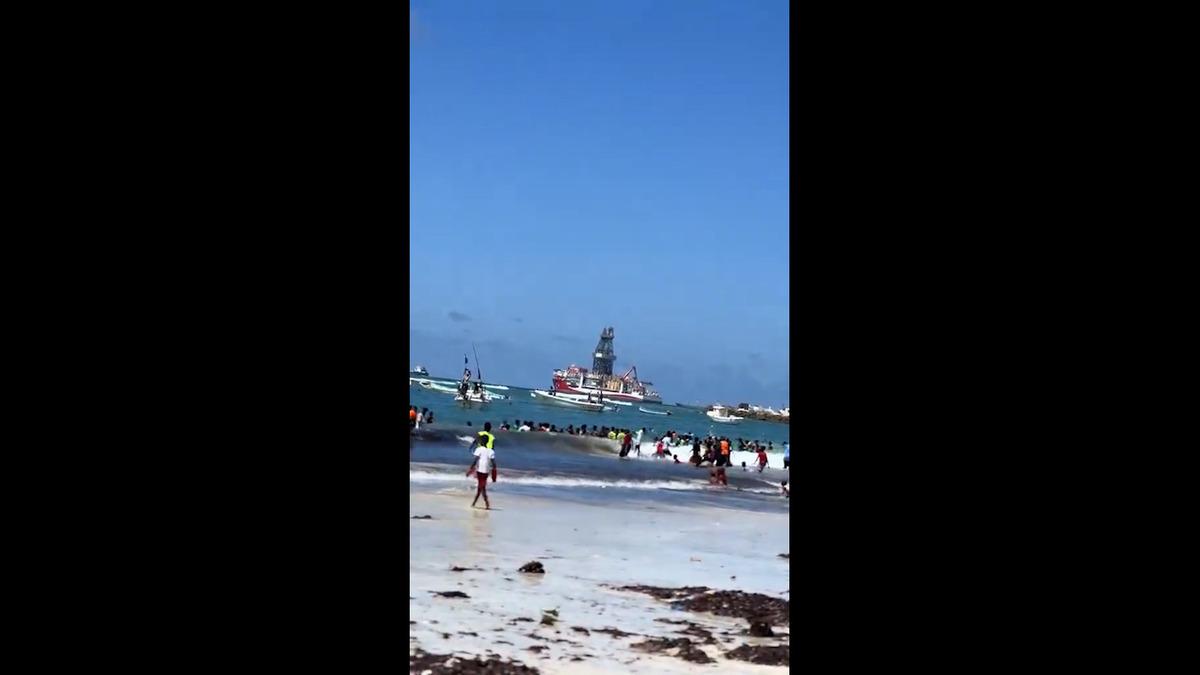 Somali halkı Çağrı Bey gemisini plaja akın ederek coşkuyla karşıladı.