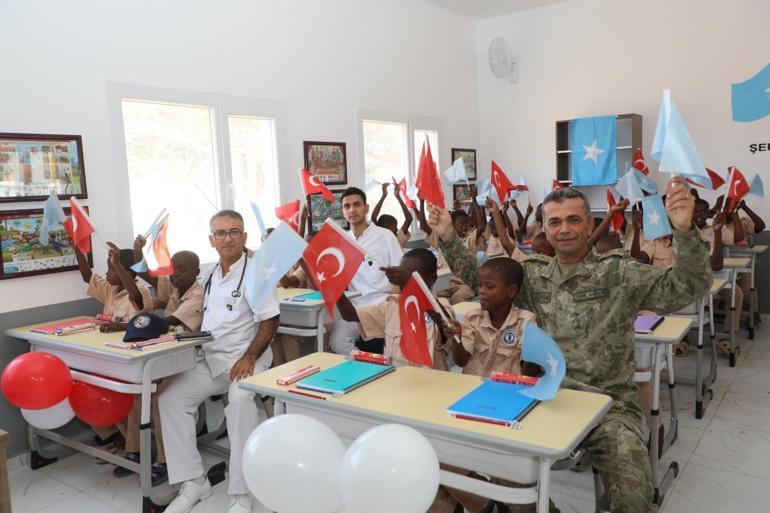 Milli Savunma Bakanlığı’nın sosyal medya hesabından yapılan paylaşımda, “Somali Türk Görev Kuvveti Komutanlığımız, 29 Ekim Cumhuriyet Bayramı etkinlikleri kapsamında, Somali Şehit Asker ve Polis Yetimhanesi Şehit Ömer Halisdemir Türkçe Dershanesi’nde eğitim gören şehit çocuklarını ziyaret etti.