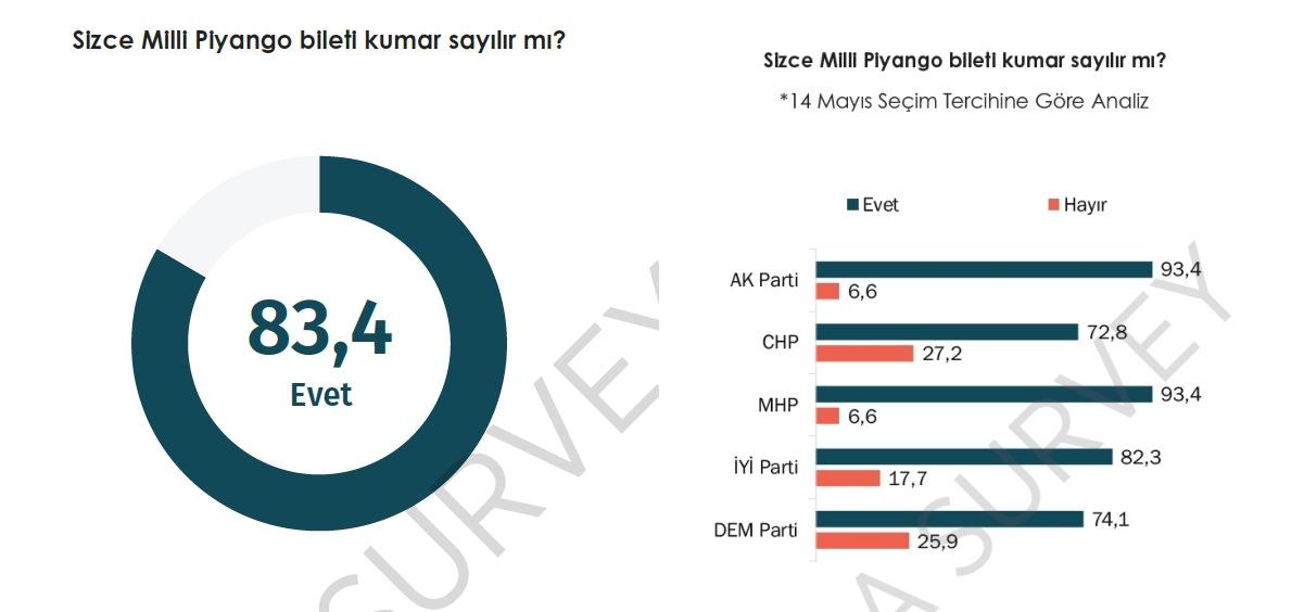 CHP lideri Özgür Özel, “Anadolu’daki insanlar yılbaşında aldığı Milli Piyango biletini kumardan saymıyor” demişti. Areda anketinde Milli Piyango biletini kumar olarak görenlerin oranı yüzde 83,4 olarak ölçüldü.