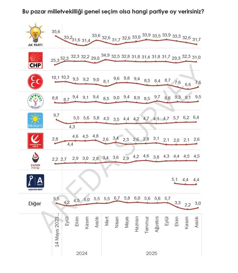 Ankete göre Aralık 2025 sonuçlarına göre son seçim anketi şöyle: