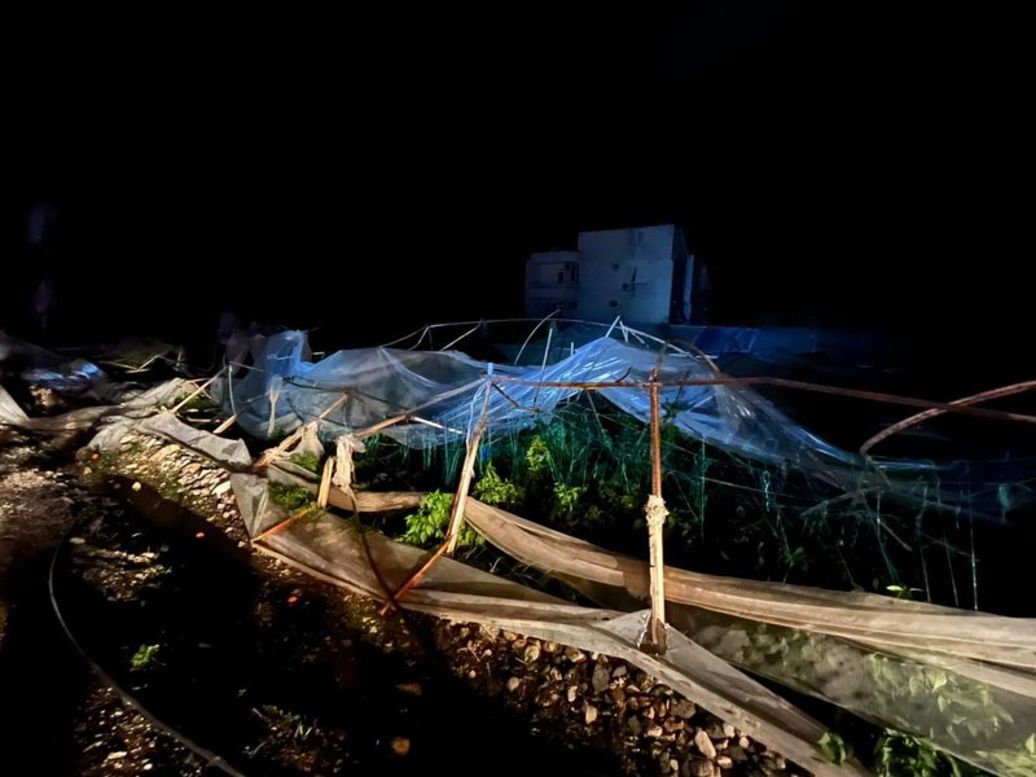 SERALAR YERLE BİR OLDU Finike ilçesinde akşam saat 20.00 sıralarında başlayan fırtınanın ardından sağanak başlarken, Saklısu Mahallesi'nde denizde oluşan hortum domates, biber ve kabak yetiştirilen seraları adeta yerle bir etti.