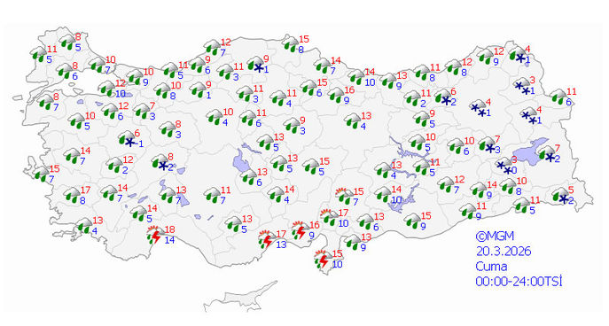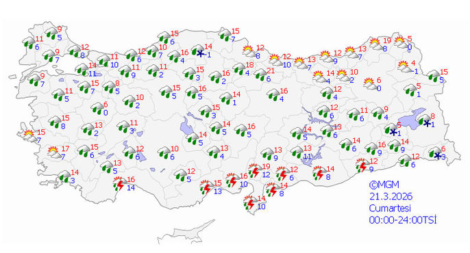 YARINDAN İTİBAREN DAHA DA SOĞUYOR Ülke genelinin 18 Mart 2026 Çarşamba gününden itibaren batı kesimlerden başlayarak yağışlı ve soğuk havanın etkisi altına girmesi bekleniyor. 19 Mart Arife Günü ve 20-22 Mart bayram günlerinde yurt genelinin yağışlı ve soğuk havanın etkisi altında kalması öngörülüyor.