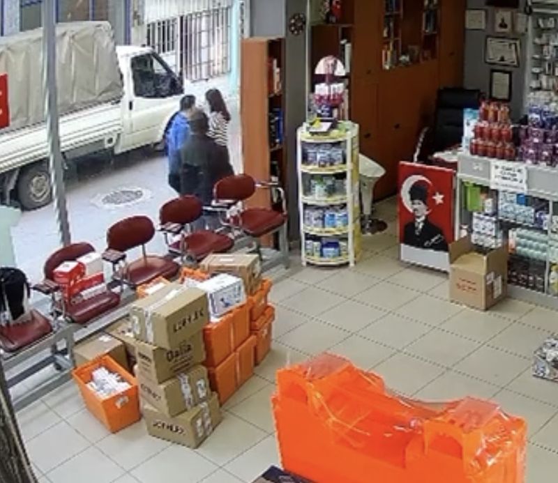 OLAY ANI KAMERAYA YANSIDI Görüntülerde eczanenin önünde duran D.Ö., cep telefonuyla ilgilendiği sırada, yanına yaklaşan T.K.’nin üstüne atlayıp beline sarıldığı, yere düşen kadının üstündeki kıyafetleri çıkarmaya çalıştığı görüldü. Şüphelinin arkadaşı H.K. (26) de kadının yanına gelirken, D.Ö.’nün yardım çığlıklarını duyan çalışma arkadaşının, ne olduğunu anlamak için önce camdan baktığı, ardından koşarak dışarı çıkıp, kadını, saldırganın elinden kurtardığı anlar, görüntüye yansıdı. Olayın şokunu yaşayan kadının, “Sigara içiyordum, geldi üstüme atladı” dediği de duyuldu.