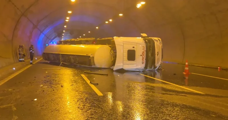 Son dakika Çatalca Tünelinde hammadde taşıyan tanker devrildi!