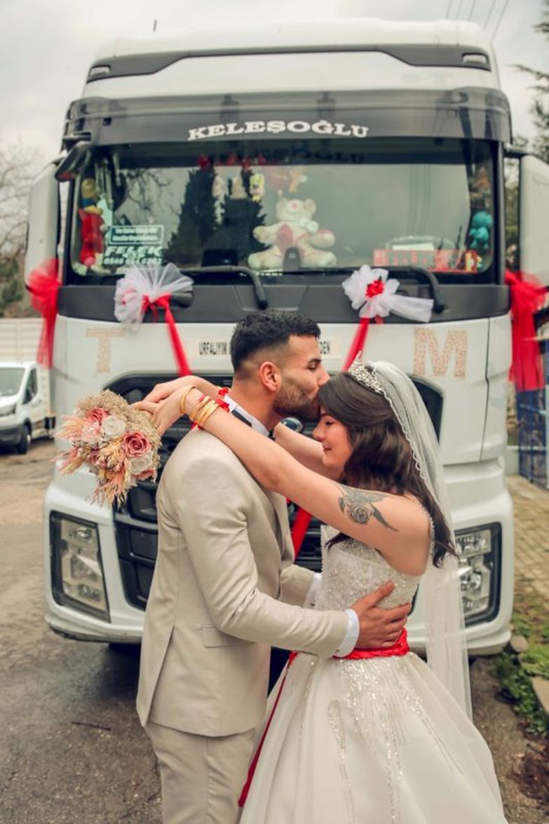 'ÇOK GURURLANDIM' Mehmet Şükrü Durak, ileride çocuklarına anlatabilecekleri bir anı olması için TIR'ı gelin arabası olarak seçtiğini belirterek, "Unutulmak istemedik, iz bırakmak istedik. Çok güzel olduğunu düşünüyorum. TIR benim çocukluk hayalim olan bir şeydi. TIR'la unutulmaz bir anı oluşturduğumuza inanıyorum. Çok gururlandım ve zevk aldım. Eşim çok şaşırdı. TIR'ı gördüğünde havalara uçtu. Onun içinde unutulmaz bir anı oldu. Mutluyuz" dedi.