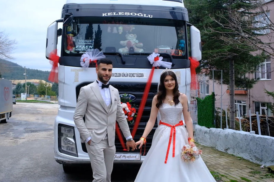 Edirne'nin Keşan ilçesinde TIR şoförlüğü yapan Mehmet Şükrü Durak (24), hayatını Tuğçe Durak (22) ile birleştirdi. Durak, kullandığı dorsesiz TIR'ı süsleyip gelin arabası yaparak Durak'ı nikah salonuna götürmek üzere evinden aldı. Çiftin araç konvoyuna, damadın şoför arkadaşları da süsledikleri TIR'larla eşlik etti.