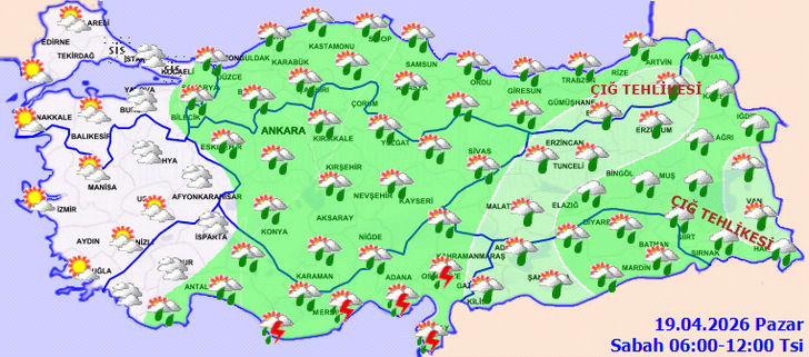 Yağışların, genellikle sağanak ve yer yer gök gürültülü sağanak, Doğu Karadeniz'in iç ve yüksek kesimleri ile Doğu Anadolu'nun kuzeyinde karla karışık yağmur ve kar şeklinde görülmesi bekleniyor.