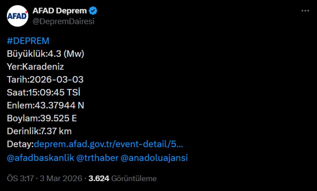 Son dakika Karadeniz de deprem! AFAD dan açıklama geldi