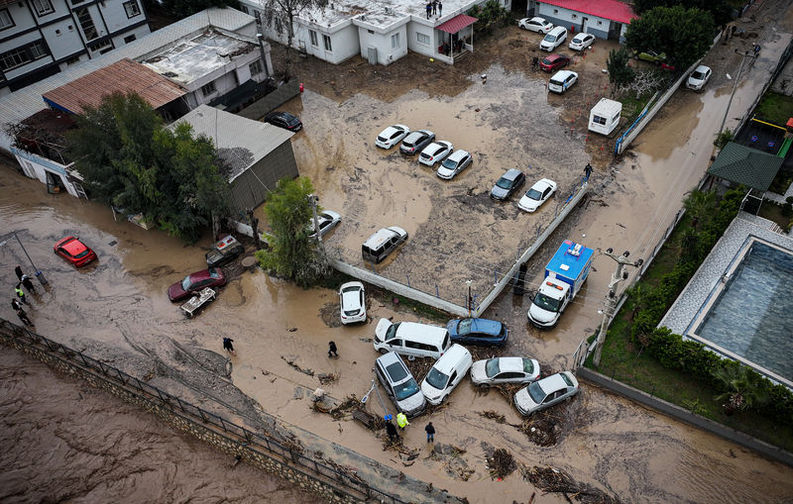 Mersin'de kuvvetli yağış nedeniyle bazı dereler taştı, bazı araçlar su altında kaldı.