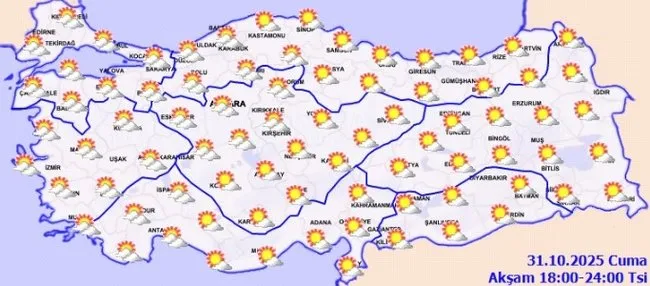 Cuma akşam saatlerinde hava durumu genel olarak parçalı ve az bulutlu seyreder. Güneşin batmasıyla birlikte hava sıcaklıkları düşmeye başlar ve iç kesimlerde tekrar sis oluşumu için zemin hazırlanır. Özellikle Marmara'nın güneyi, Ege'nin iç kesimleri ve İç Anadolu'nun bazı noktalarında gece saatlerine doğru sis ve pusun etkisini göstermeye başlayabileceği görülmektedir. Ülke genelinde yağışsız bir gece başlangıcı beklenmektedir.