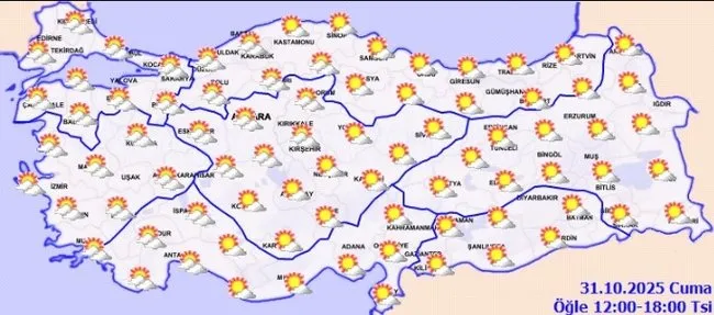 Öğle saatlerine doğru ve öğleden sonra, sabah saatlerindeki sis ve pus büyük ölçüde dağılır. Hava durumu Türkiye genelinde az bulutlu ve güneşli bir karaktere bürünür. Marmara'nın bazı iç kesimleri, Ege ve Batı Karadeniz'in iç bölgeleri ile İç Anadolu'da yer yer parçalı bulutlar görülmeye devam edebilir. Ancak genel olarak ülke genelinde yağış beklenmemektedir ve hava açık bir seyir izleyecektir.