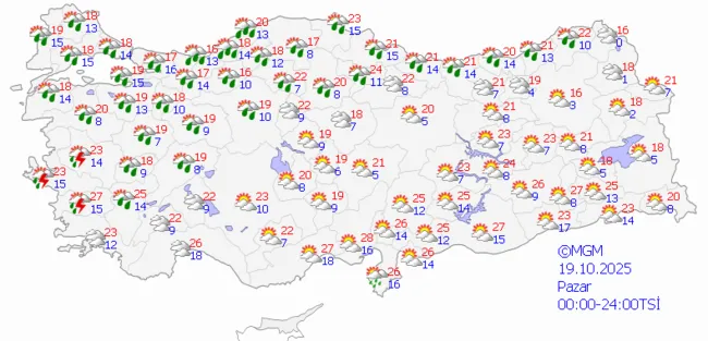 18 Ekim 2025 Cumartesi itibarıyla Türkiye genelinde hava durumu, mevsim geçişinin tüm özelliklerini göstermeye başladı. Batı bölgelerde başlayan hafif yağışlar ve Marmara'daki rüzgarlı hava, önümüzdeki günlerde ülkenin büyük bir bölümünü etkisi altına alacak yeni bir hava sisteminin habercisi. Meteoroloji Genel Müdürlüğü (MGM) verilerine göre, özellikle 19 Ekim Pazar gününden itibaren hava durumu kademeli olarak sertleşecek ve hafta boyunca etkisini sürdürecek.