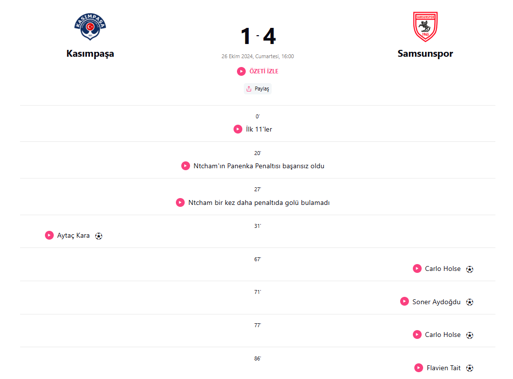 En dikkat çekici nokta ise 26 Ekim 2024 tarihinde Kasımpaşa- Samsunspor maçı oldu.