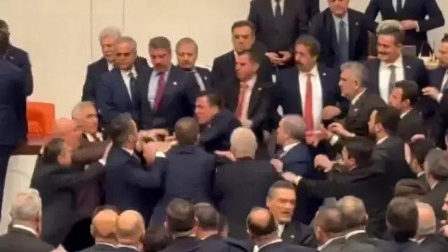 Bu sırada AK Parti Ankara Milletvekili Osman Gökçek ile CHP Şanlıurfa Milletvekili Mahmut Tanal, yumruk yumruğa kavga etti.