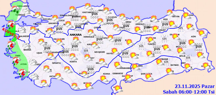 Güneşli 15°Yağışların, sabah saatlerinden itibaren Çanakkale çevreleri ile Balıkesir’in batı kıyılarında yer yer kuvvetli olması bekleniyor. Gece ve sabah saatlerinde iç ve doğu kesimlerde pus ve yer yer sis de bekleniyor.