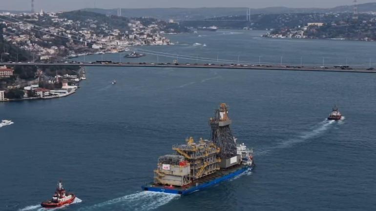 Sondaj gemisinin kulesini taşıyan gemi İstanbul Boğazı ndan geçiyor
