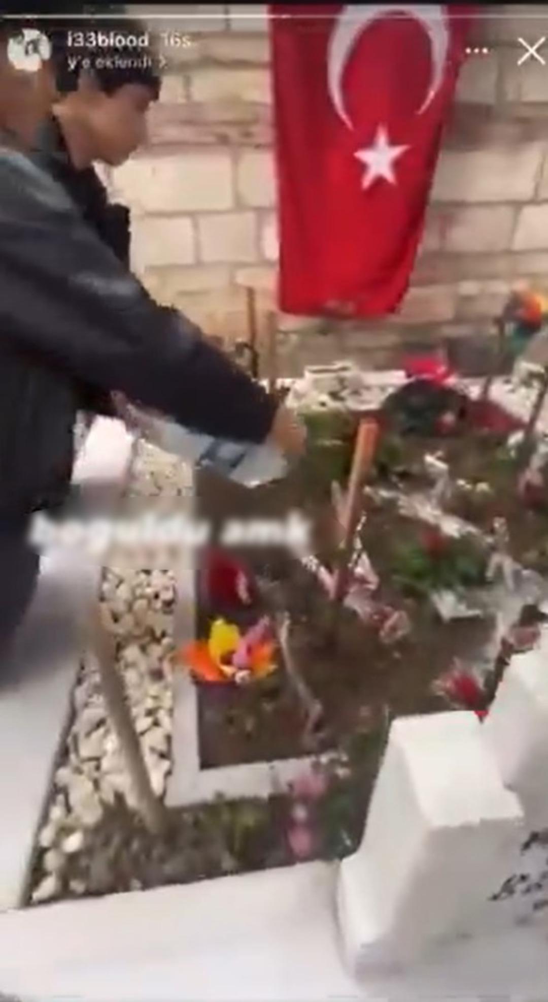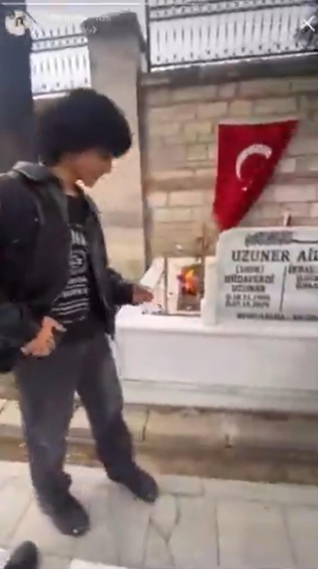 Görüntülerde kendini bilmez bir grubun Edirnekapı'daki surlara giderek katil Semih Çelik'e övgü dolu ifadeler videolar çektiği ortaya çıktı. Çelik'in videolarında kullandığı şarkıyı da paylaşımlarına yerleştiren grubun İkbal Uzuner'in de mezarına iğrenç bir saldırı düzenlediği öğrenildi.