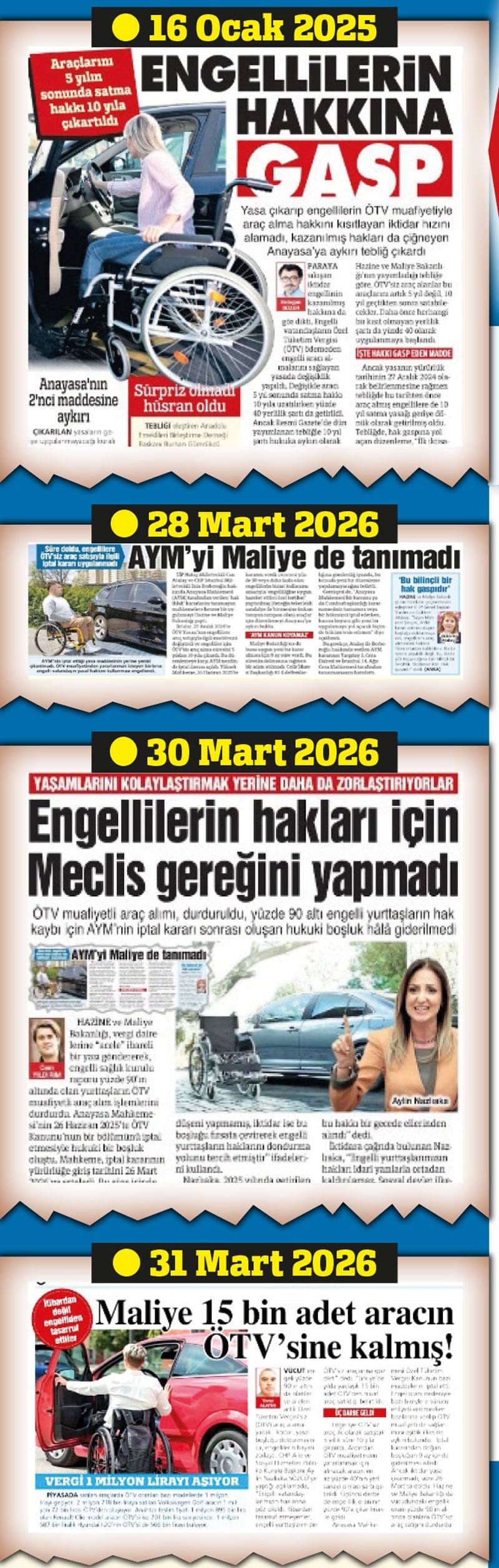 SÖZCÜ’nün ısrarlı haber takibinin yanı sıra CHP Sosyal Politikalar Başkanı Aylin Nazlıaka da sık sık konuyu gündemde tuttu ve temaslarda bulundu. Bu girişimler ve haberler sonrası AKP önceki gece yeni düzenleme yaptı. Kabul edilen önerge ile engellilik oranı yüzde 40’ın üzerinde olanlara da araç alımında ÖTV indirimi uygulanacak.