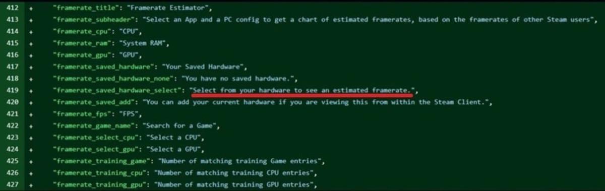 KODLARIN ARASINDA BULUNDUTweak Town'da yer alan habere göre, Steam İstemcisi kodlarında daha önce orada olmayan yeni bir satır tespit edildi. Buna göre, bu satırda "Diğer kullanıcıların kare hızlarına dayalı olarak tahmini kare hızlarının bir tablosunu almak için bir Uygulama ve bir PC yapılandırması seçin." ifadesi yer alıyordu.