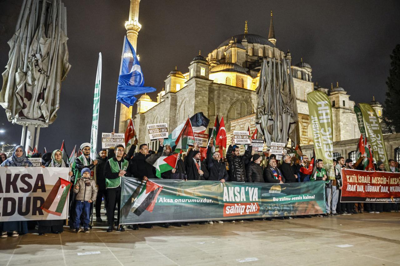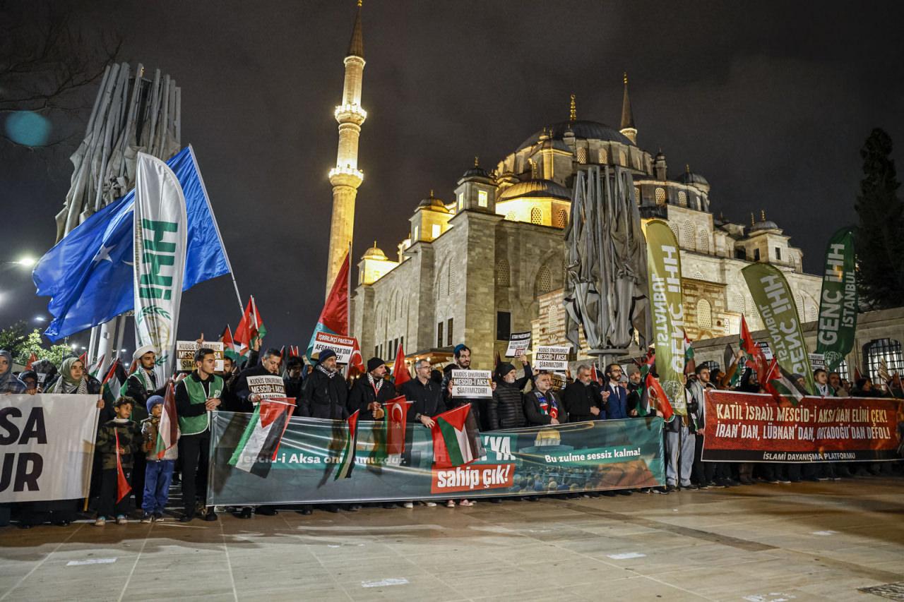İsrail'in Mescid-i Aksa'yı ibadete kapatmasını ve Müslümanların mescidde namaz kılmasını engellemesi sebebiyle sivil toplum kuruluşlarınca Fatih Camiî avlusunda basın açıklaması düzenlendi. İHH İnsani Yardım Vakfı, Filistin'e Destek Platformu ve İslami Dayanışma Platformu tarafından düzenlenen basın açıklaması Kur'an-ı Kerim tilaveti ile başladı.