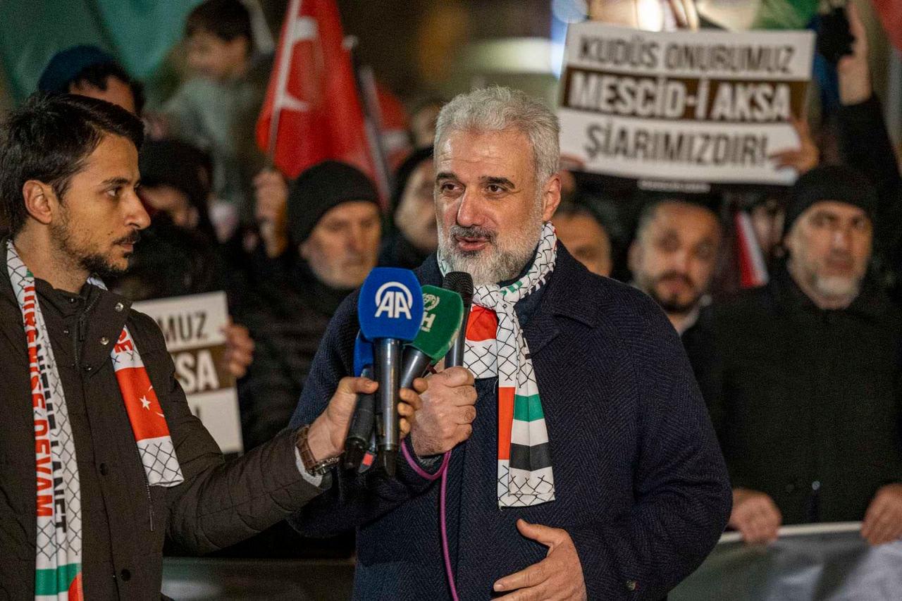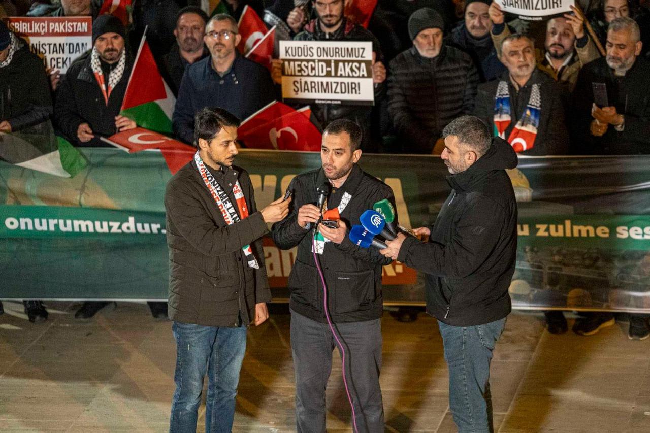 İslami Dayanışma Platformu Başkanı Rıdvan Kaya da, “Yaklaşık bir asırdır bütün coğrafyamız kanıyor. Siyonist katil şebeke coğrafyamızı katliama ve insanlık suçlarına açık hale getirdi. Son 2 buçuk yıldır zulmünü daha da artırarak ve Filistin topraklarıyla sınırlı kalmadan Suriye, Lübnan, Yemen ve İran'a saldırarak azgınlığını ve kudurganlığını bütün bir coğrafyamıza yaymış bulunuyor. Bu katil sürüsünün Gazze'de işlemediği insanlık suçu kalmadı. Çocuklarımızı, kadınlarımızı, ümmetin en değerli evlatlarını katlettiler. Hastaneleri bombaladılar, camileri, kiliseleri bombaladılar ve zulümlerini şimdi de Mescid-i Aksa’yı kapatarak devam ettiriyorlar" dedi.
