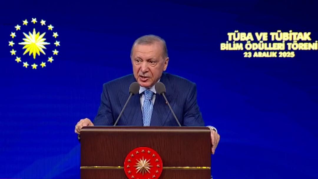 Cumhurbaşkanı Recep Tayyip Erdoğan, Beştepe Millet Kongre ve Kültür Merkezi'nde "2025 TÜBA ve TÜBİTAK Bilim Ödülleri Töreni"ne katıldı. Cumhurbaşkanı Erdoğan burada yaptığı konuşmada gündeme dair önemli açıklamalarda bulundu.