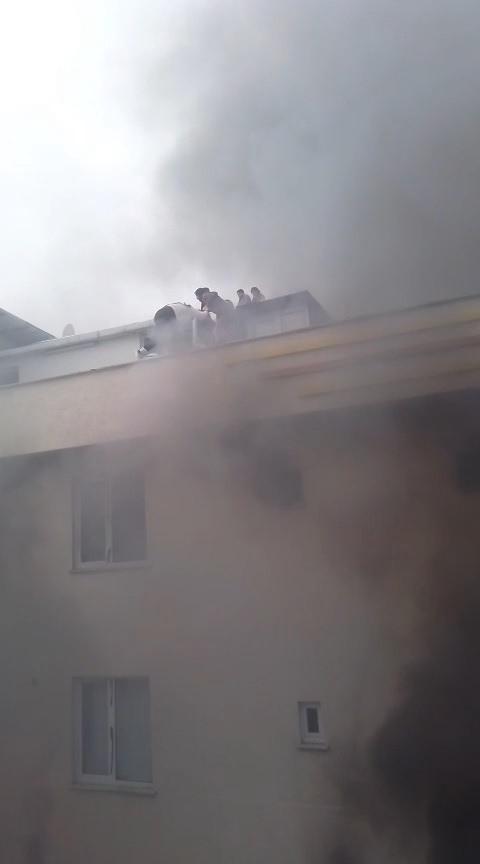 Aşağıya inemeyen bina sakinleri can havliyle çatıya çıktı. Aralarında çocukların da bulunduğu 12 kişi dumandan etkilenmemek için çatıda güvenli bir yere geçti.