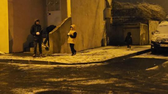 Sultangazi de kar yağışı altında parkta arkadaşını tıraş etti