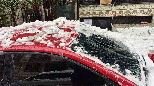 Sultangazi’de çatıdan düşen kar kütlesi park halindeki otomobile zarar verdi