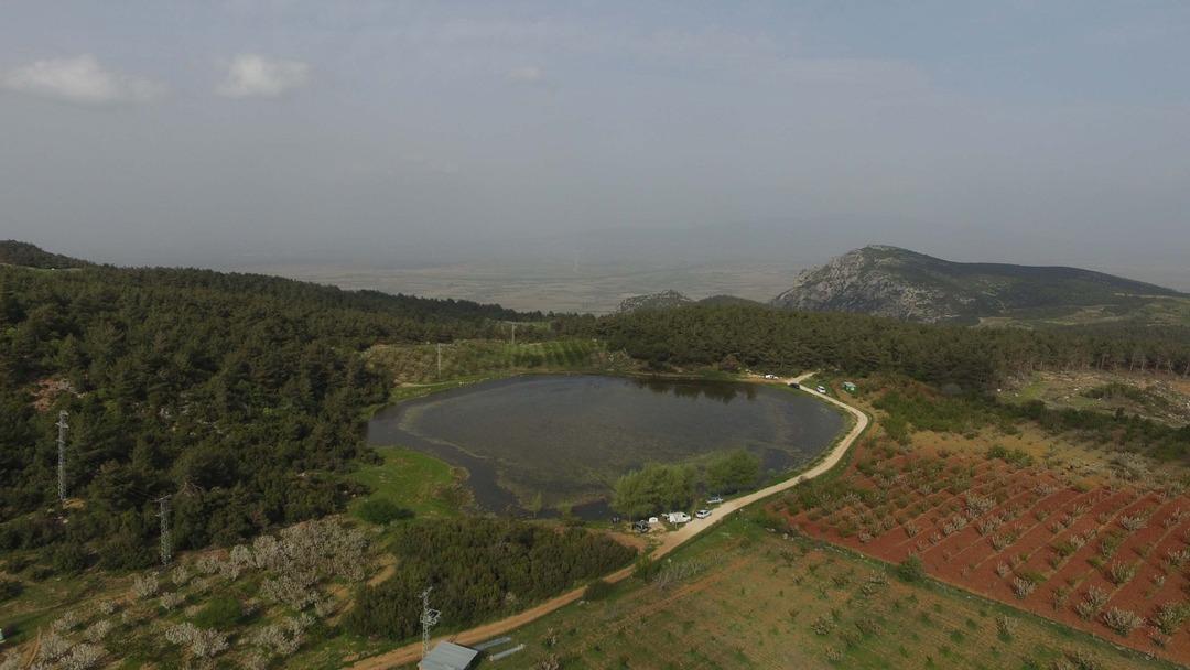 Manisa'da 1517 rakımlık Spil Dağı Milli Parkı sınırları içerisinde yer alan 600 metre yükseklikteki Sülüklü Göl'de su seviyesi, geçen yıl yağışların yetersiz olması ve kuraklık nedeniyle düştü.