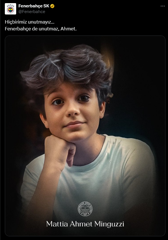 "HİÇBİRİMİZ UNUTMAYIZ... FENERBAHÇE DE UNUTMAZ AHMET"Son olarak Fenerbahçe ise paylaşımında "Hiçbirimiz unutmayız... Fenerbahçe de unutmaz, Ahmet" ifadelerini kullandı.