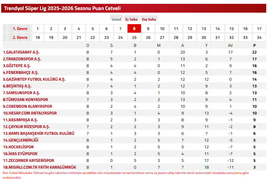 Puan durumuKocaelispor 15. sırada yer alırken Konyaspor ise 8. sırada.