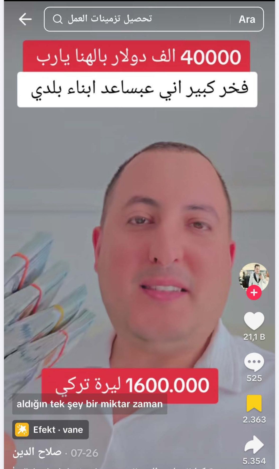 Adliyelerin önünde veya avukat bürosunda elinde tomar tomar paralarla Arapça videolar çekip yayınlıyor.