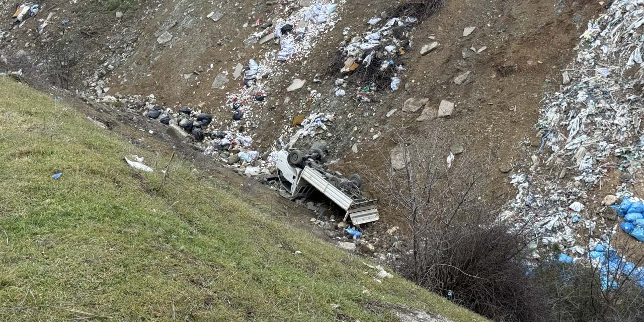 Sürücü hakimiyetini kaybetti: Kamyonet şarampole devrildi!