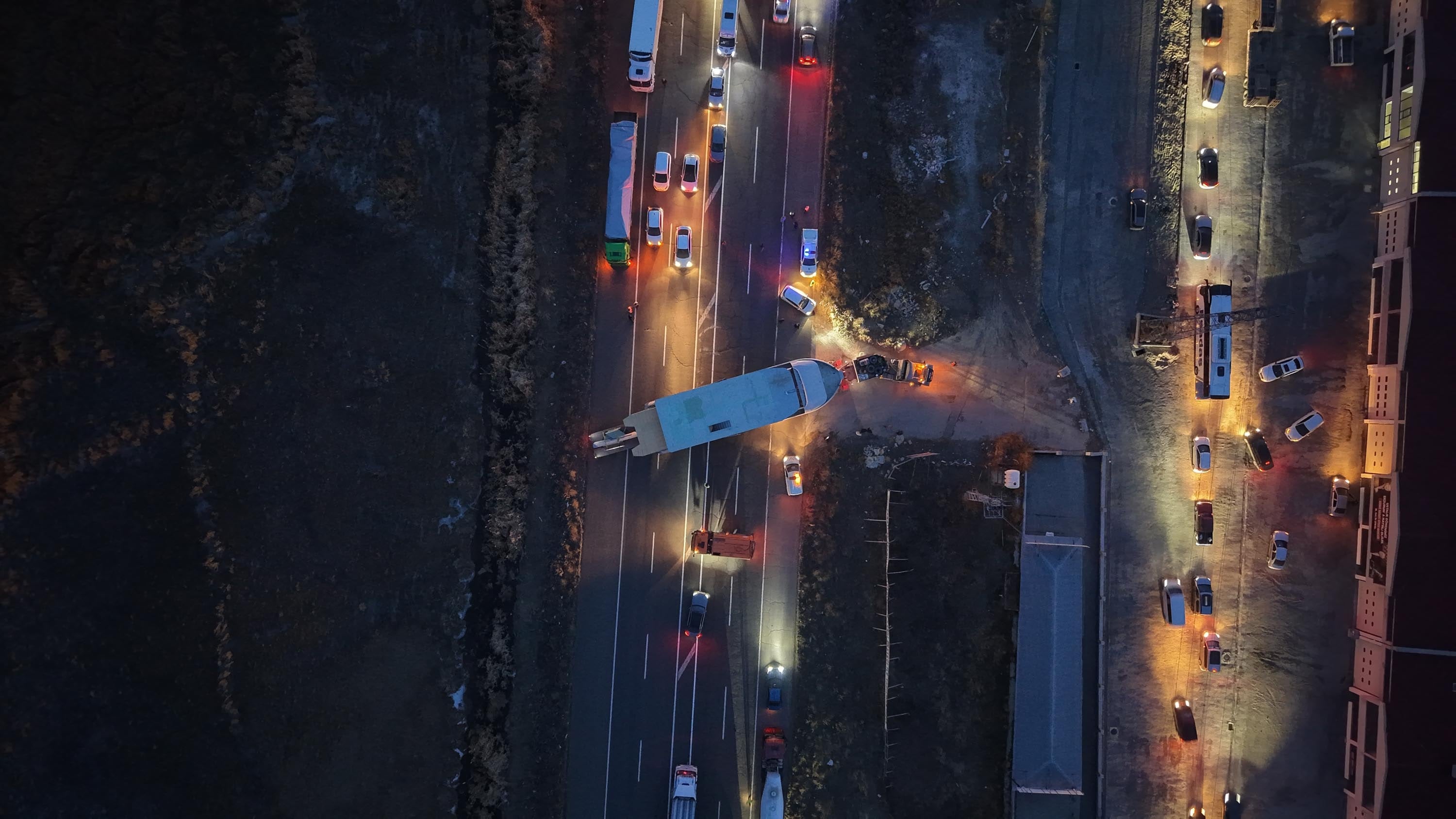Uzun araç kuyrukları oluşan TIR'ı çalıştırmak isteyen sürücü başarılı olamayınca sanayi sitesindeki iş makinesinin sürücüsü Ahmet Polat'tan yardım istendi. İş makinesine bağlanan halatla TIR'ın çekilmesine çalışıldı.