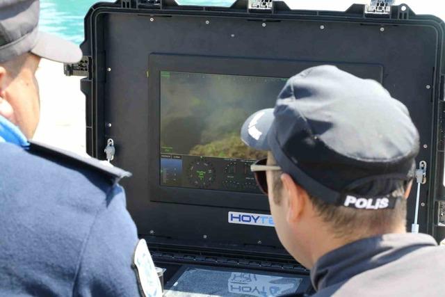 SU ALTI ROBOTU DELİL VE ARAMA KURTARMA ÇALIŞMALARINDA ETKİLİEnvanterinde ileri teknoloji su altı robotu bulunduran deniz polisi, suda yok edilmek istenilen suç delilleri ya da arama kurtarma çalışmalarında büyük katkı sağlıyor. Suya indirilen robot, uzaktan kumanda sistemiyle metrelerce derinliğe inerek tarama ve yüksek çözünürlükte görüntüleme imkanı sağlayıp ekiplerin işini oldukça kolaylaştırıyor.
