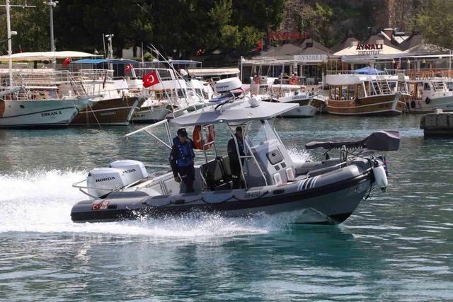 "SÜREKLİ DEVRİYE HALİNDEYİZ"Antalya Emniyeti Deniz Limanı Şube Müdürlüğü’nden Başkomiser Çağlar Gürsoy, denizlerde vatandaşların can ve mal güvenliğini sağlamak amacıyla 7 gün 24 saat görev yaptıklarını belirterek, "Şubemizde üç karakol botu, operasyonel botlar ile birlikte yardımcı ekipman olarak su altı robotu ve uzaktan kumandalı elektronik can simitlerimiz bulunuyor. Envanterimizdeki karakol botlarıyla sürekli devriye halindeyiz" dedi.