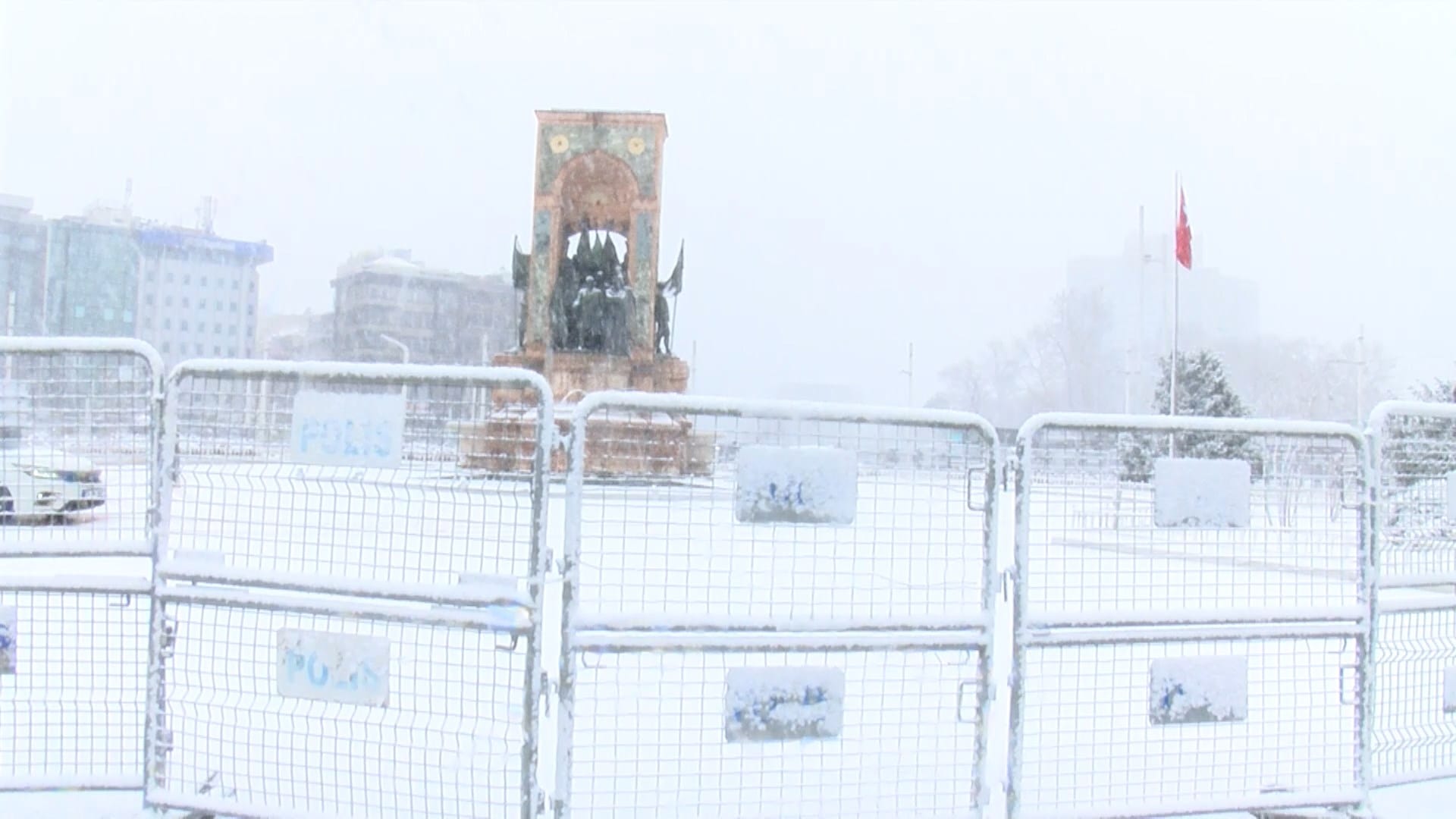 TAKSİM MEYDANI BEYAZA BÜRÜNDÜKentin yüksek kesimlerinde yoğun görülen kar yağışı öğle saatlerinde Taksim Meydanı'nda etkili oldu. Lapa lapa yağan karın ardından Taksim Meydanı beyaza büründü.