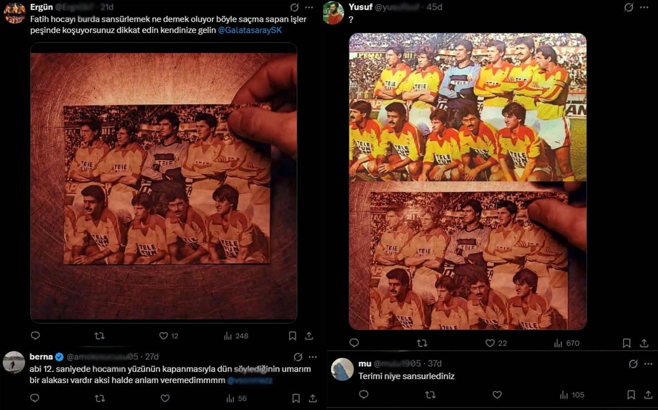 Ancak dönemin takım kaptanı Fatih Terim'in tanıtım filminde yer almaması ve sansüre uğraması taraftarların dikkatini çekti. Sarı kırmızılı ekibin efsanesi Terim'in de yer aldığı takım fotoğrafının ekrana geldiği anlarda deneyimli futbol adamının üzerinin parmakla kapatılmasının ardından sosyal medyada tepkiler yükseldi.