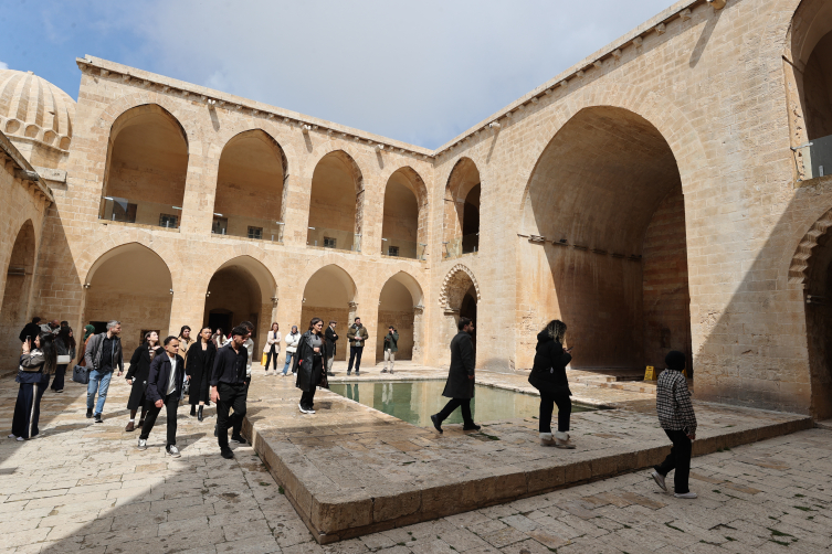 Yerli ve yabancı turistlerin ziyaretine de açık olan tarihi medresede Mardin Artuklu Üniversitesi Turizm Rehberliği Bölümü öğrencileri de uygulamalı rehberlik eğitimi görüyor.