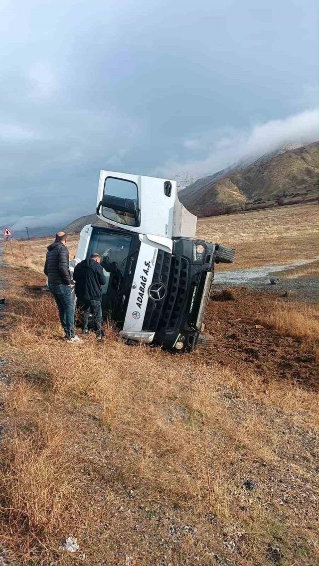 Tatvan Hizan yolunda beton mikseri şarampole devrildi: 1 yaralı
