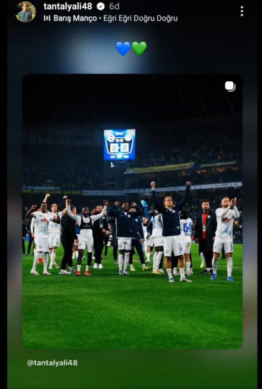SOSYAL MEDYA HESABINDAN DA PAYLAŞIM YAPTITaylan Antalyalı, maçın ardından sosyal medya hesabından da yine sarı-lacivertlileri kızdıran bir paylaşım yaptı. Tecrübeli oyuncu, paylaşımında Barış Manço’nun "Eğri Eğri Doğru Doğru" adlı şarkısını kullandı.