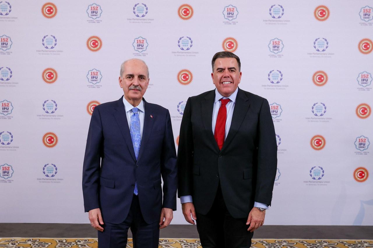 Türkiye Büyük Millet Meclisi (TBMM) Başkanı Numan Kurtulmuş, Parlamentolar Arası Birlik (PAB) 152'nci Genel Kurulu için İstanbul'da bulunan Avustralya Temsilciler Meclisi Başkanı Milton Dick ile bir araya geldi.